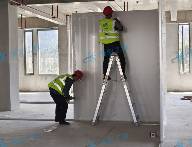 2. 结构施工:先顶棚后墙面,彩钢板安装垂直度误差≤1mm/m,地面施工环境温度控制在15-30℃(避开河南夏季极端高温)。